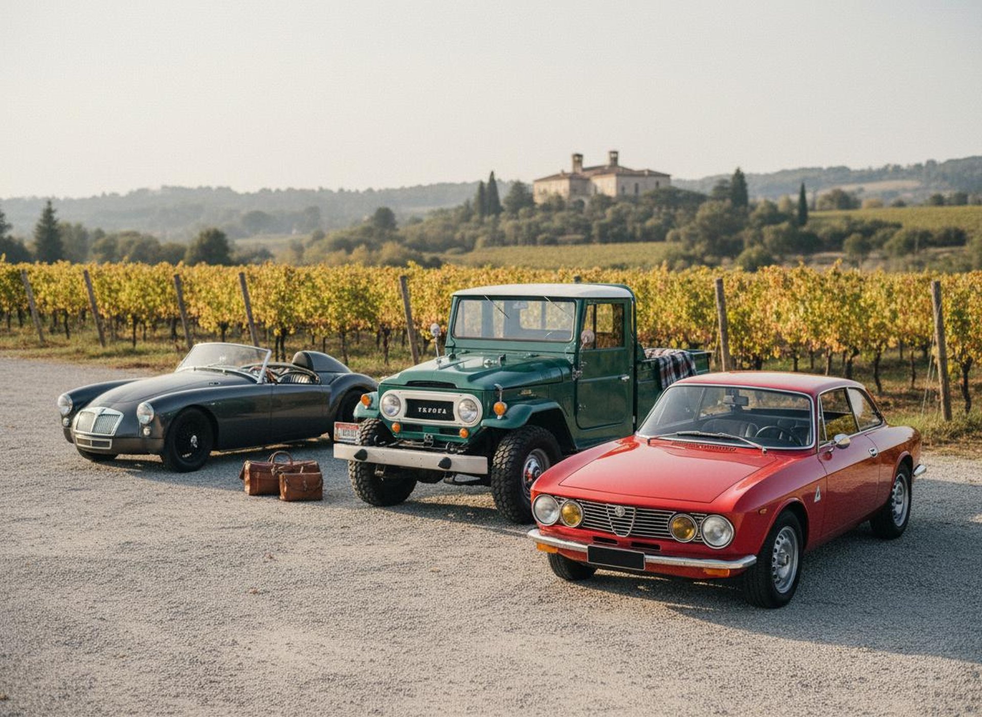 Four timeless cars. Endless ways to use them. Whether you want polished British style, Italian romance, playful charm, or rugged vintage cool, our fleet is ready to elevate your shoot, your celebration, and your story.